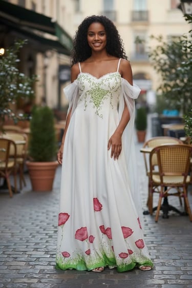 Puedes traer tu propio vestido y lo transformaré en el diseño soñado. Colores, flores, mariposas o cualquier inspiración especial… tu vestido reflejará tu historia y tu esencia en cada trazo.